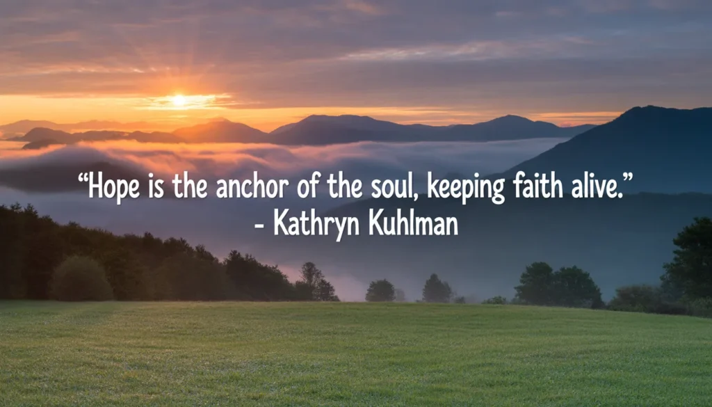 Hope sustains faith in difficult times. Kuhlman teaches that maintaining hope brings strength, clarity, and resilience. Believers are encouraged to focus on God’s promises rather than their circumstances.